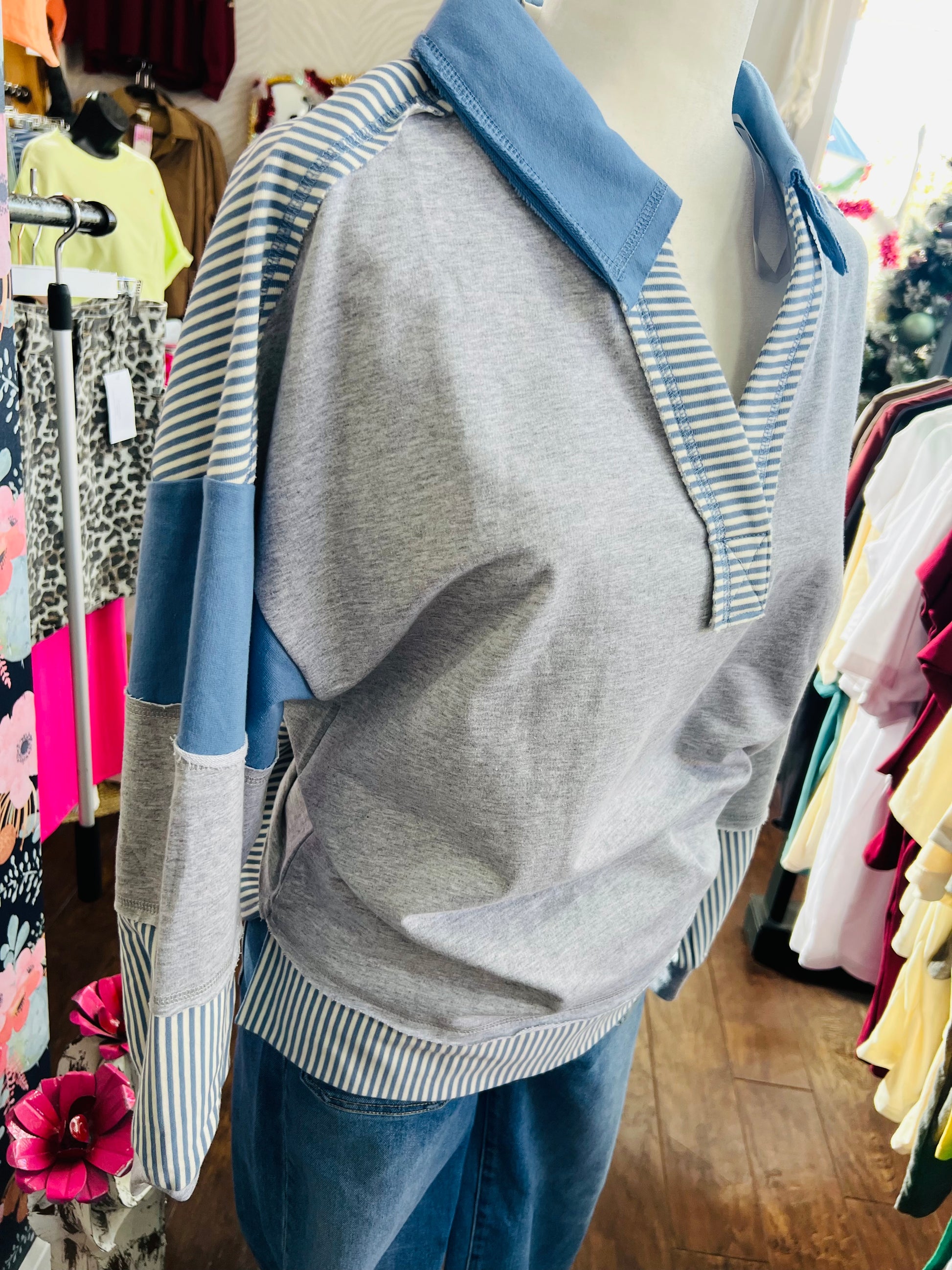 BLUE COLORBLOCK TOP
