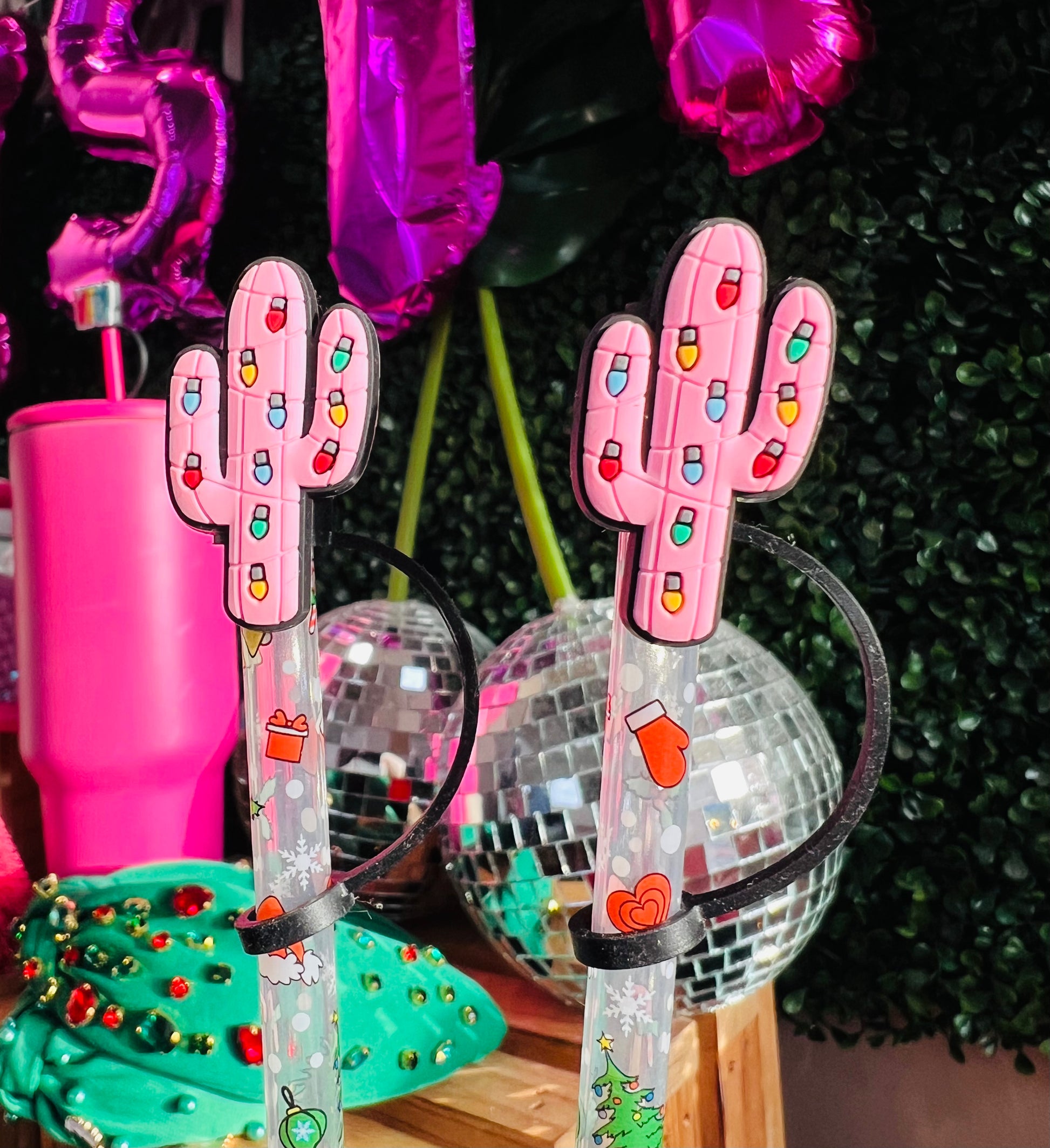 PINK XMAS CACTUS STRAW TOPPER