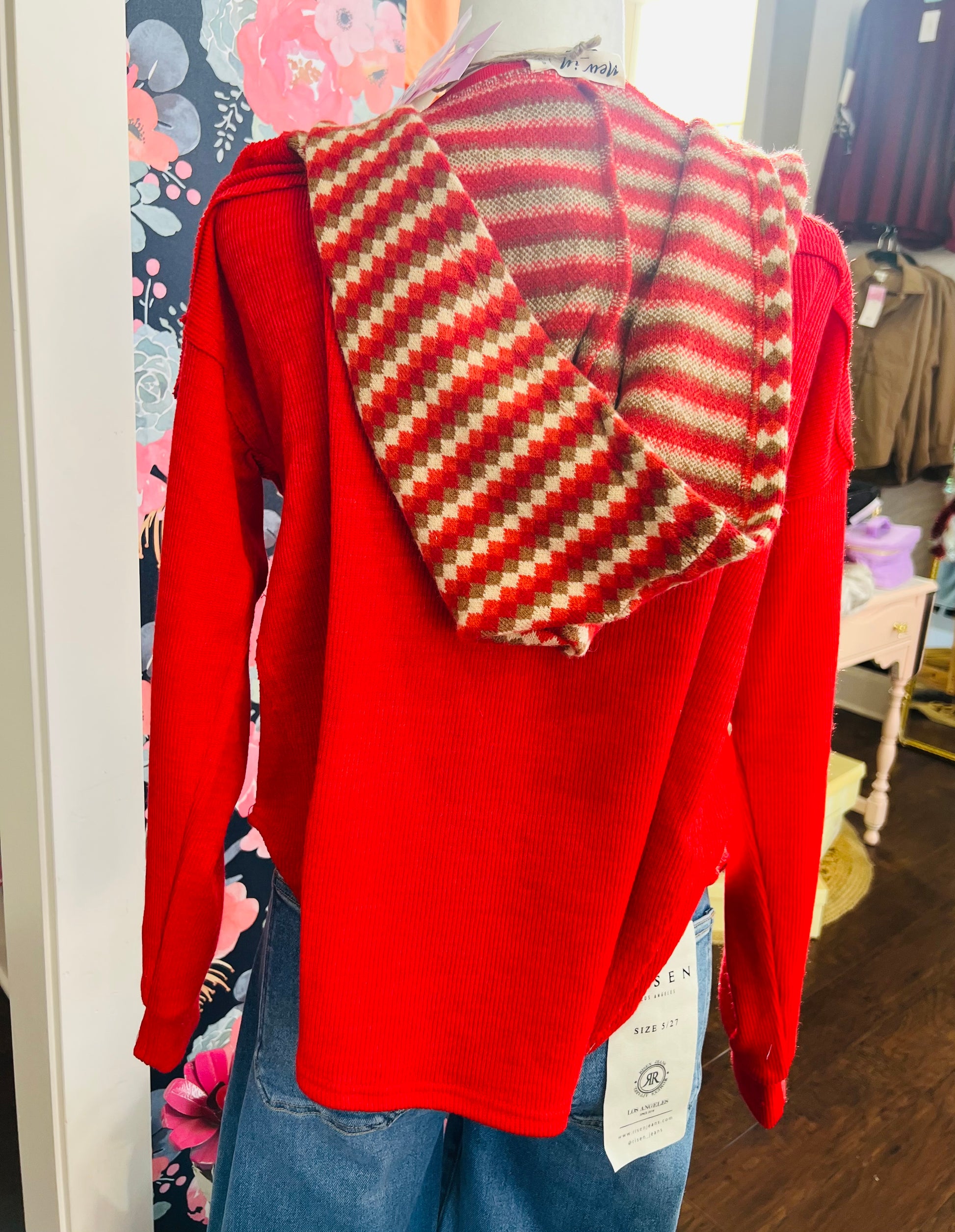 RED COZY HOODY TOP